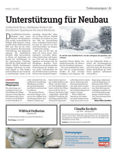 Anlässlich ihres Jubiläums fördert die Dornbirner Sparkasse die neue Bücherei.