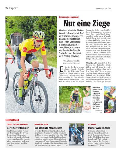Gestern startete die Österreich-Rundfahrt. Auf den kommenden sechs Etappen erhofft sich das Team Vorarlberg Santic weitere Spitzenplätze, nachdem der Deutsche Jannik Steimle zum Auftakt den Prolog gewann.