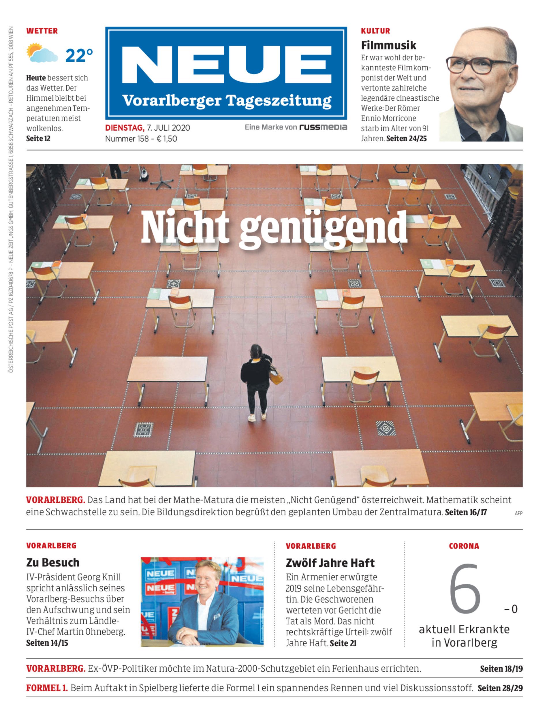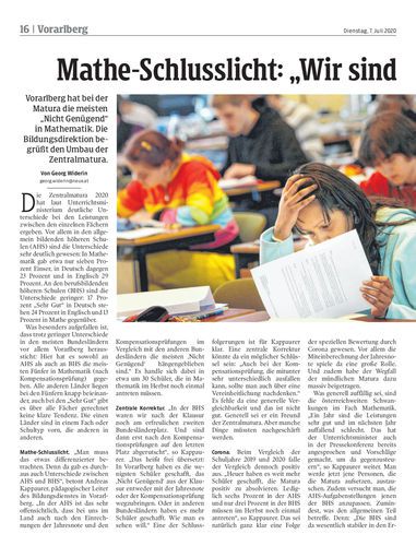 Vorarlberg. Das Land hat bei der Mathe-Matura die meisten „Nicht Genügend“ österreichweit. Mathematik scheint eine Schwachstelle zu sein. Die Bildungsdirektion begrüßt den geplanten Umbau der Zentralmatura. Seiten 16/17 AFP