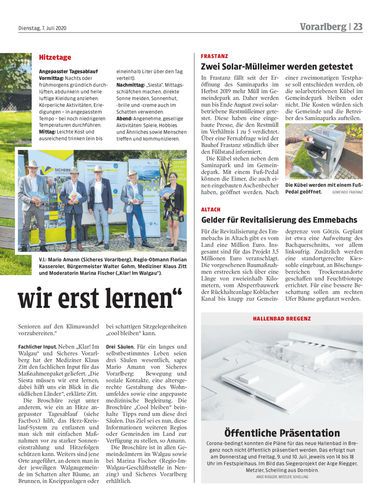 Die Regio Im Walgau hat in Frastanz eine Broschüre mit Anpassungsmaßnahmen in Hinblick auf den Klimawandel präsentiert – mit Fokus auf Senioren.