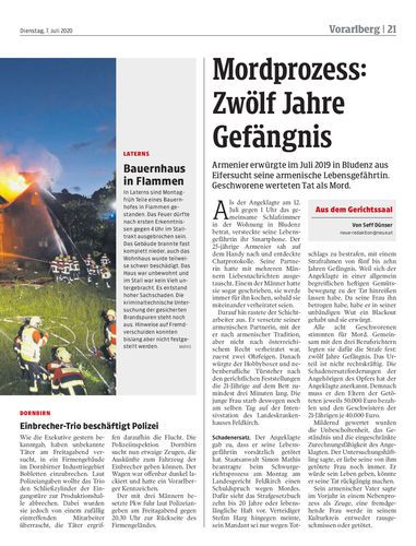 Armenier erwürgte im Juli 2019 in Bludenz aus Eifersucht seine armenische Lebensgefährtin. Geschworene werteten Tat als Mord.