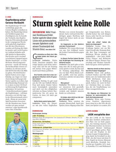 Interview. WAC-Trainer Ferdinand Feldhofer spricht über eine Liste mit potenziellen neuen Spielern und einen Trainerjob bei Sturm Graz. Von Albin Tilli