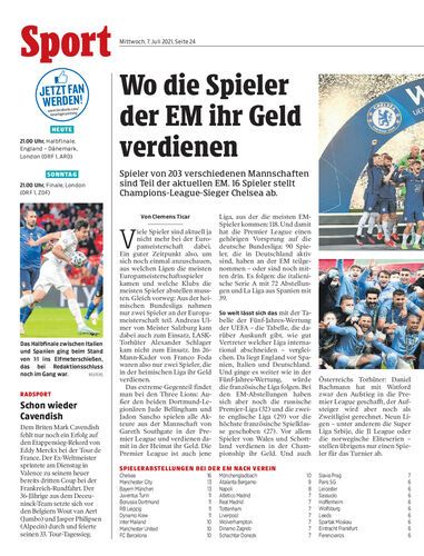 Spieler von 203 verschiedenen Mannschaften sind Teil der aktuellen EM. 16 Spieler stellt Champions-League-Sieger Chelsea ab.