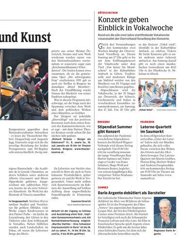 Rund um die alle zwei Jahre stattfindende Vokalwoche veranstaltet der Chorverband Vorarlberg drei Konzerte.
