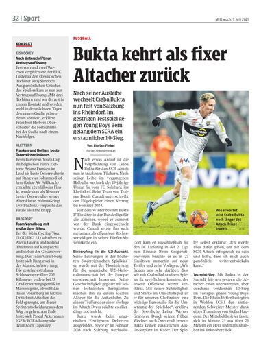 Nach seiner Ausleihe wechselt Csaba Bukta nun fest von Salzburg ins Rheindorf. Im gestrigen Testspiel gegen Young Boys Bern gelang dem SCRA ein erstaunlicher 1:0-Sieg.