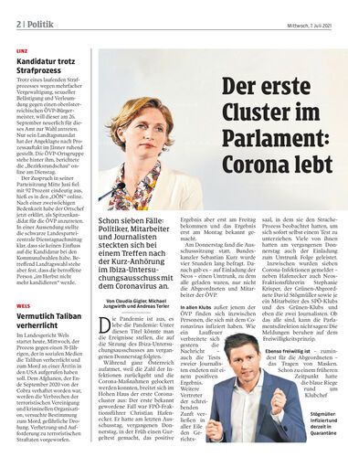 Schon sieben Fälle: Politiker, Mitarbeiter und Journalisten steckten sich bei einem Treffen nach der Kurz-Anhörung im Ibiza-Untersuchungsausschuss mit dem Coronavirus an.