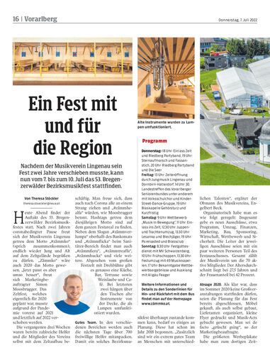 Nachdem der Musikverein Lingenau sein Fest zwei Jahre verschieben musste, kann nun vom 7. bis zum 10. Juli das 53. Bregenzerwälder Bezirksmusikfest stattfinden.