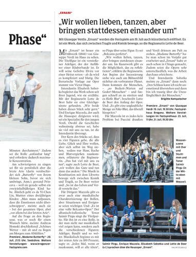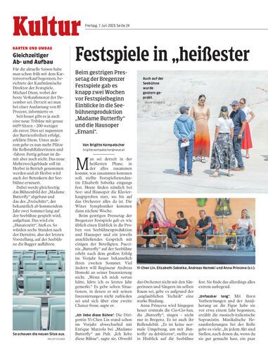 Beim gestrigen Pressetag der Bregenzer Festspiele gab es knapp zwei Wochen vor Festspielbeginn Einblicke in die Seebühnenproduktion „Madame Butterfly“ und die Hausoper „Ernani“.