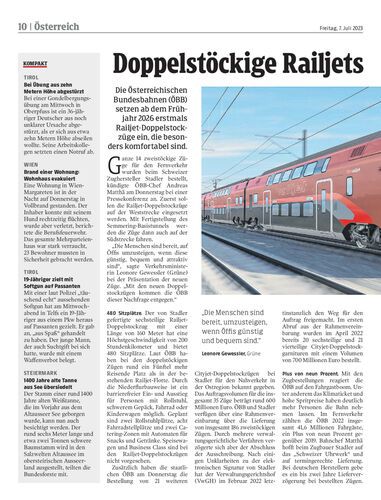 Die Österreichischen Bundesbahnen (ÖBB) setzen ab dem Frühjahr 2026 erstmals Railjet-Doppelstockzüge ein, die besonders komfortabel sind.