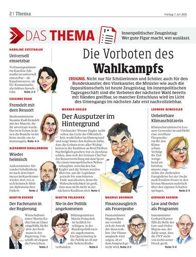 Zeugnis. Nicht nur für Schülerinnen und Schüler, auch für den Bundeskanzler, den Vizekanzler, die Minister wie auch die Oppositionschefs ist heute Zeugnistag. Im innenpolitischen Tagesgeschäft sind die Vorboten der nächsten Wahl bereits mit Händen greifbar, so mancher Entschluss wird im Licht des Urnengangs im nächsten Jahr erst nachvollziehbar.