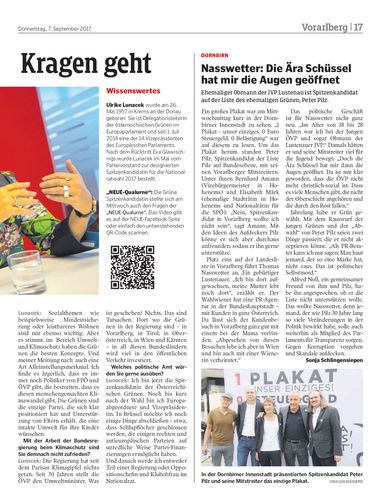 Ehemaliger Obmann der JVP Lustenau ist Spitzenkandidat auf der Liste des ehemaligen Grünen, Peter Pilz.