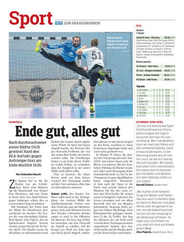 Nach durchwachsener erster Hälfte (14:11) gewinnt Hard den HLA-Auftakt gegen Aufsteiger Graz am Ende deutlich 33:26.