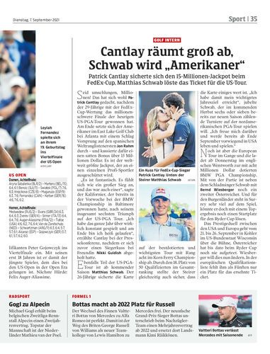 Patrick Cantlay sicherte sich den 15-Millionen-Jackpot beim FedEx-Cup, Matthias Schwab löste das Ticket für die US-Tour.