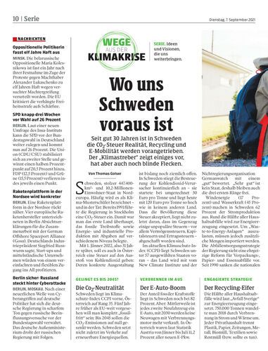 Seit gut 30 Jahren ist in Schweden die CO2-Steuer Realität, Recycling und E-Mobilität werden vorangetrieben. Der „Klimastreber“ zeigt einiges vor, hat aber auch noch blinde Flecken.