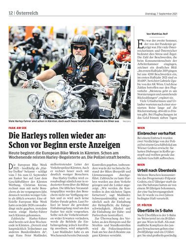 Heute beginnt die European Bike Week in Kärnten. Schon am Wochenende reisten Harley-Begeisterte an. Die Polizei straft bereits.