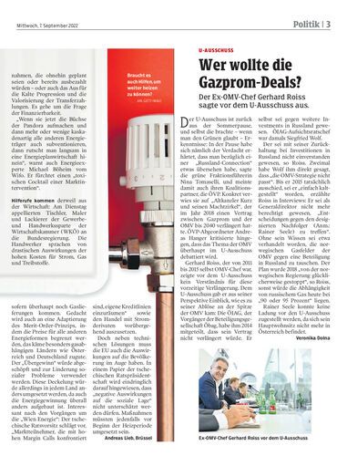 Der Ex-OMV-Chef Gerhard Roiss sagte vor dem U-Ausschuss aus.