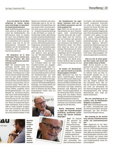 Interview. WKV-Präsident Karlheinz Kopf fordert Bürokratieabbau, ein Maßnahmenpaket gegen den Fachkräftemangel sowie mehr Zurückhaltung bei KV-Abschlüssen und staatlich finanzierten Leistungen.