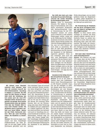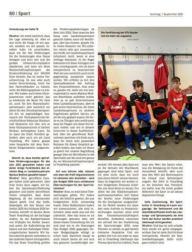 Interview. Mit 1. Juli hat das Land Vorarl-berg die Förderung von Instandhaltungen bei Sportstätten gestrichen sowie die Förderungen der heimischen Profieinrichtungen mit 100.000 Euro gedeckelt. Im zweiten Gesprächsteil bezieht Sportlandesrätin Martina Rüscher Stellung zur Zukunft der Fußballakademie, blickt auf das Budget 2026 voraus und betont, dass es keine Überraschungen gibt.