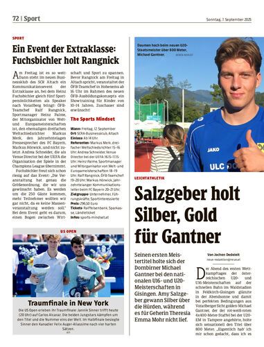 Seinen ersten Meistertitel holte sich der Dornbirner Michael Gantner bei den nationalen U16- und U20-Meisterschaften in Gisingen. Amy Salzgeber gewann Silber über die Hürden, während es für Geherin Theresia Emma Mohr nicht lief.