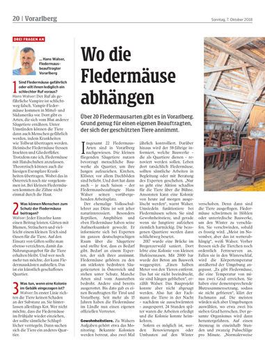 Über 20 Fledermausarten gibt es in Vorarlberg. Grund genug für einen eigenen Beauftragten, der sich der geschützten Tiere annimmt.