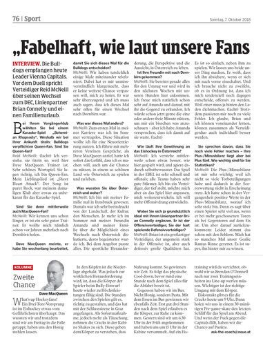 Interview. Die Bulldogs empfangen heute Leader Vienna Capitals. Vor dem Duell spricht Verteidiger Reid McNeill über seinen Wechsel zum DEC, Linienpartner Brian Connelly und einen Familienurlaub.