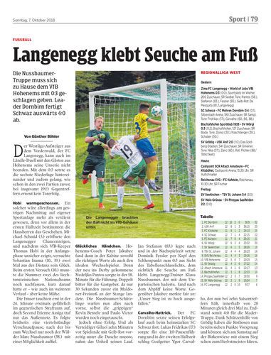 Die Nussbaumer-Truppe muss sich zu Hause dem VfB Hohenems mit 0:3 geschlagen geben. Leader Dornbirn fertigt Schwaz auswärts 4:0 ab.
