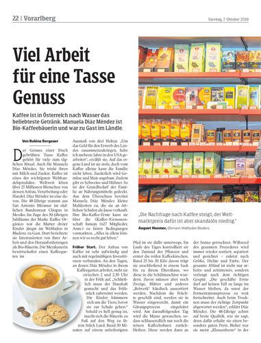 Kaffee ist in Österreich nach Wasser das beliebteste Getränk. Manuela Diáz Méndez ist Bio-Kaffeebäuerin und war zu Gast im Ländle.