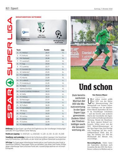 Zum bereits sechsten Mal hat der DSV die Monatswertung in der Spar Super Liga gewonnen. Zudem führt der Titelverteidiger auch die Gesamtwertung an.