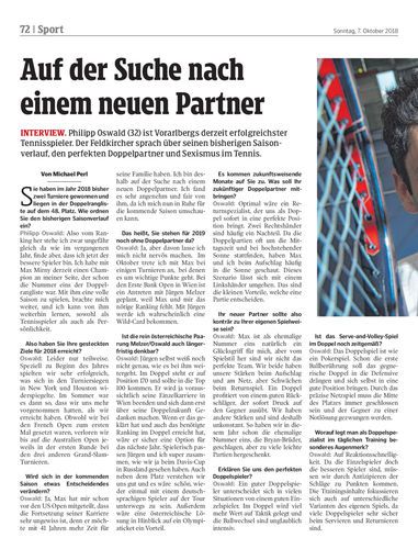 Interview. Philipp Oswald (32) ist Vorarlbergs derzeit erfolgreichster Tennisspieler. Der Feldkircher sprach über seinen bisherigen Saisonverlauf, den perfekten Doppelpartner und Sexismus im Tennis.