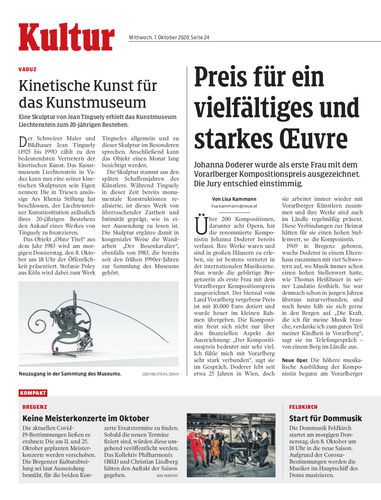 Johanna Doderer wurde als erste Frau mit dem Vorarlberger Kompositionspreis ausgezeichnet. Die Jury entschied einstimmig.