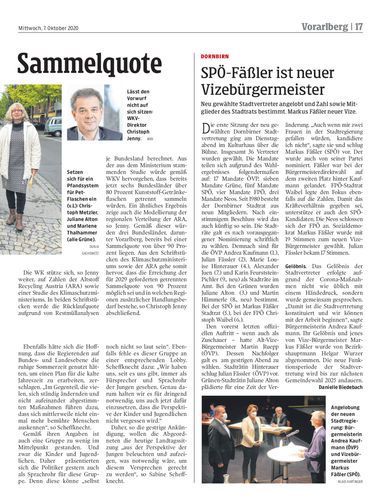 Neu gewählte Stadtvertreter angelobt und Zahl sowie Mitglieder des Stadtrats bestimmt. Markus Fäßler neuer Vize.