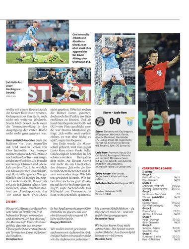 Die Grazer holten als bessere Mannschaft gegen Lazio Rom ein 0:0. Jusuf Gazibegovic musste vorzeitig mit Gelb-Rot vom Platz.