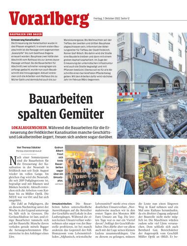 Lokalaugenschein. Während die Bauarbeiten für die Erneuerung der Feldkircher Kanalisation manche Geschäfts- und Lokalbetreiber ärgert, freuen sich andere sogar darüber.