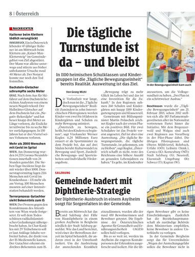 In 1100 heimischen Schulklassen und Kindergruppen ist die „Tägliche Bewegungseinheit“ bereits Realität. Ausweitung ist das Ziel.