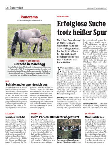 Nach dem Doppelmord in der Steiermark wurde nun nahe des Tatorts eingebrochen. Die Ermittler zählen bei der Suche nach dem flüchtigen Friedrich F. auch auf das kalte Wetter.