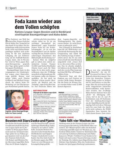 Nations League: Gegen Bosnien und in Nordirland sind Kapitän Baumgartlinger und Alaba dabei.