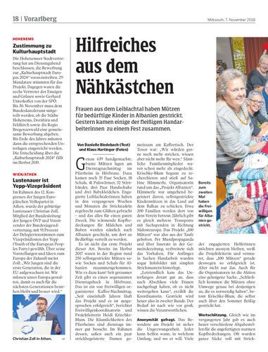 Frauen aus dem Leiblachtal haben Mützen für bedürftige Kinder in Albanien gestrickt. Gestern kamen einige der fleißigen Handarbeiterinnen zu einem Fest zusammen.