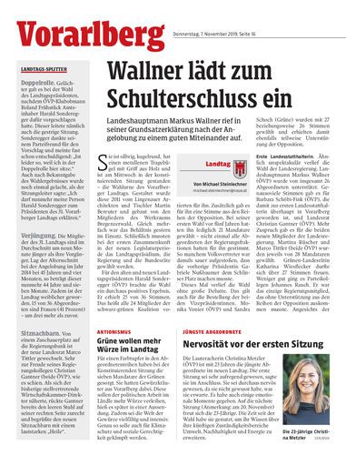 Landeshauptmann Markus Wallner rief in seiner Grundsatzerklärung nach der Angelobung zu einem guten Miteinander auf.