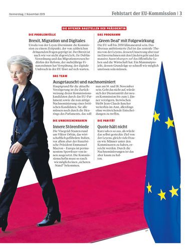 Holpriger Beginn. Ursula von der Leyen übernimmt die EU-Kommission zu einem Zeitpunkt, der von zahlreichen drängenden Fragen geprägt ist. Brexit, Migration und Klimakrise sind nur einige davon. Seiten 2/3 REUTERS/Francois Lenoir