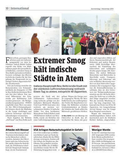 Indiens Hauptstadt Neu-Delhi ist die Stadt mit der stärksten Luftverschmutzung weltweit: Einen Tag zu atmen, entspricht 40 Zigaretten.