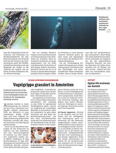 Im Bezirk Amstetten in Niederösterreich ist inzwischen in drei Geflügelbetrieben ein Ausbruch der Vogelgrippe bestätigt worden.