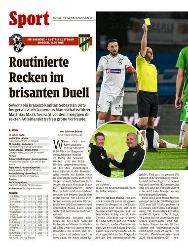 Sowohl bei Bregenz-Kapitän Sebastian Dirnberger als auch Lustenaus Mannschaftsführer Matthias Maak herrscht vor dem morgigen direkten Aufeinandertreffen große Vorfreude.