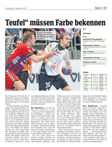 Nach dem „Umfaller“ in Linz heißt es heute (19.30) in der 15. HLA-Runde gegen Margareten „Verlieren verboten“. Heimserie spricht für die „Roten Teufel“. Platz eins noch in Reichweite.