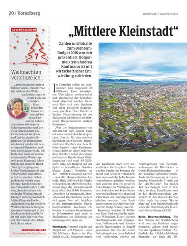 Zahlen und Inhalte zum Dornbirn-Budget 2018 wurden präsentiert. Bürgermeisterin Andrea Kaufmann ist mit wirtschaftlicher Entwicklung zufrieden.