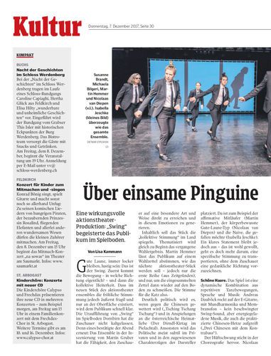 Eine wirkungsvolle aktionstheater-Produktion: „Swing“ begeisterte das Publikum im Spielboden.
