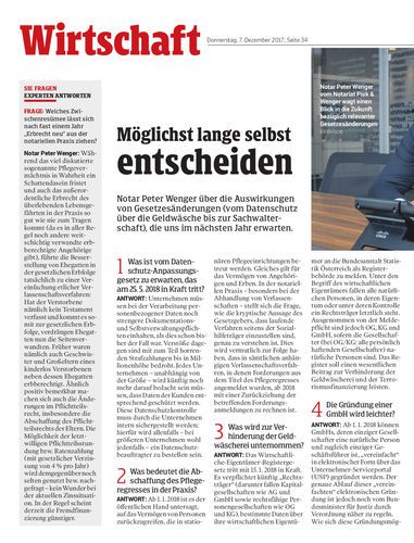 Notar Peter Wenger über die Auswirkungen von Gesetzesänderungen (vom Datenschutz über die Geldwäsche bis zur Sachwalterschaft), die uns im nächsten Jahr erwarten.
