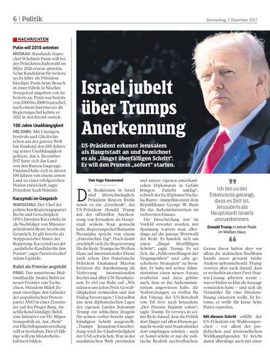 US-Präsident erkennt Jerusalem als Hauptstadt an und bezeichnet es als „längst überfälligen Schritt“. Er will den Prozess „sofort“ starten.