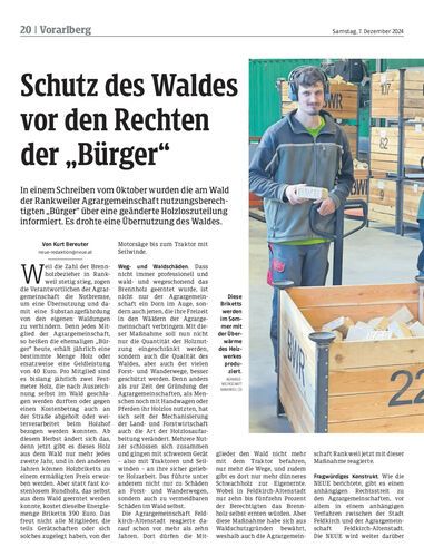 In einem Schreiben vom Oktober wurden die am Wald der Rankweiler Agrargemeinschaft nutzungsberechtigten „Bürger“ über eine geänderte Holzloszuteilung informiert. Es drohte eine Übernutzung des Waldes.