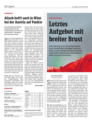 Zum Abschluss der Herbstrunde gastiert der SCR Altach morgen um 17 Uhr bei Austria Wien – und damit dem Team der Stunde.