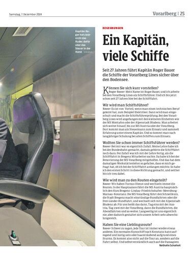 Seit 27 Jahren führt Kapitän Roger Bauer die Schiffe der Vorarlberg Lines sicher über den Bodensee.